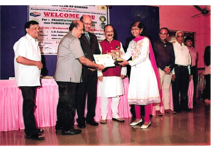 MRS.DIPTI PAREKH WAS AWARDED WITH BEST TEACHER AWARD BY LIONS CLUB OF DAHANU